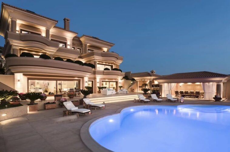 Imobilul ultra-modern, dotat cu piscină, se află pe un deal liniștit, cu vedere directă către Marea Egee și insulițele Rivierei Ateniene. Pe site-urile agențiilor imobiliare, casa este descrisă ca fiind printre cele mai mari reședințe private din zonă, oferind intimitate, dar și acces facil către capitala Greciei.