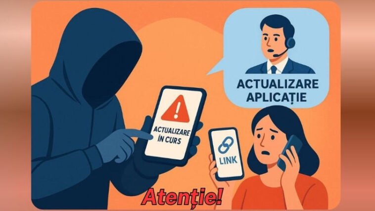 Pe ecran apare mesajul „Actualizare în curs” sau dispozitivul se blochează complet. Infractorii obțin acces la aplicația de mobile banking a victimei, dezactivează notificările privind tranzacțiile și efectuează transferuri repetate de bani către mai multe conturi și carduri bancare, pentru a ascunde traseul sumelor și a îngreuna recuperarea acestora. Operațiunile se fac rapid, de obicei în afara orelor de lucru ale băncilor, pentru a întârzia reacția instituțiilor.