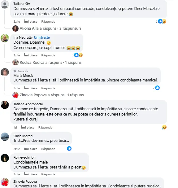 Apropiații sunt copleșiți de durere și își exprimă condoleanțele față de familia băiatului.